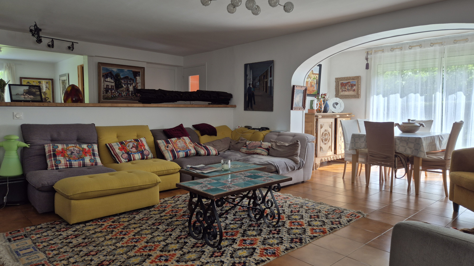 La maison est composée de deux appartements, l’un au rez-de-chaussée de 98 m² habitables. Il comprend un porche d'entrée, un grand séjour-salon de 45 m², une cuisine séparée, un dégagement desservant deux chambres, une salle d’eau et un WC indépendant.